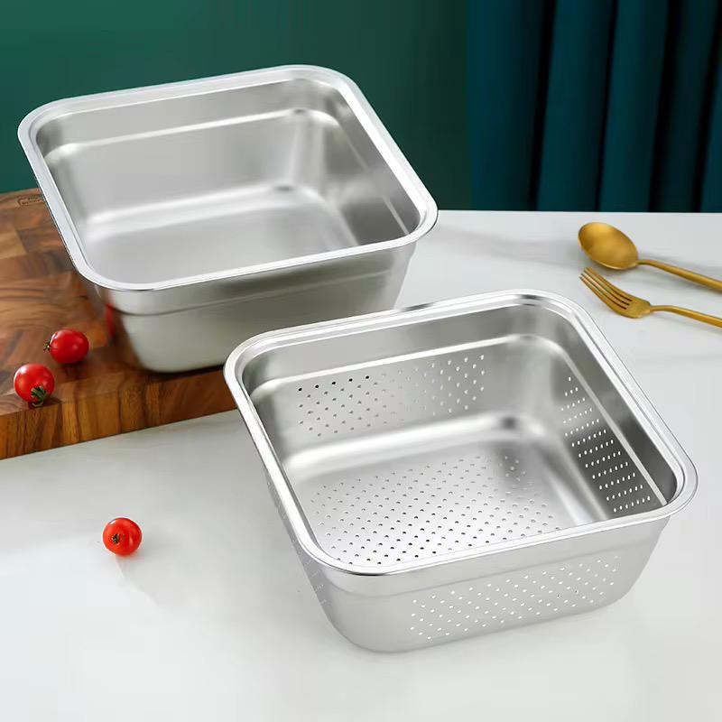 این لگن مقاوم و ضدزنگ برای شستن انواع میوهها، سبزیجات و مواد خوراکی دیگر بسیار مناسب است. طراحی مربعی آن به شما کمک میکند تا فضا را بهینهتر استفاده کنید و با آبکش سایز 28 سانت کاملاً ست و فیت میشود.