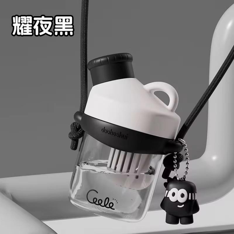 این محصول دارای بند و دستهای است که حمل آن را آسانتر میکند. وجود صافی در این قمقمه، باعث میشود شما بتوانید انواع نوشیدنیها و دمنوشها را بهراحتی و بدون نگرانی از ورود مواد خارجی، مصرف کنید. همچنین، یک آویز و اکسسوری بامزه به این محصول اضافه شده است که جذابیت آن را دوچندان میکند.
