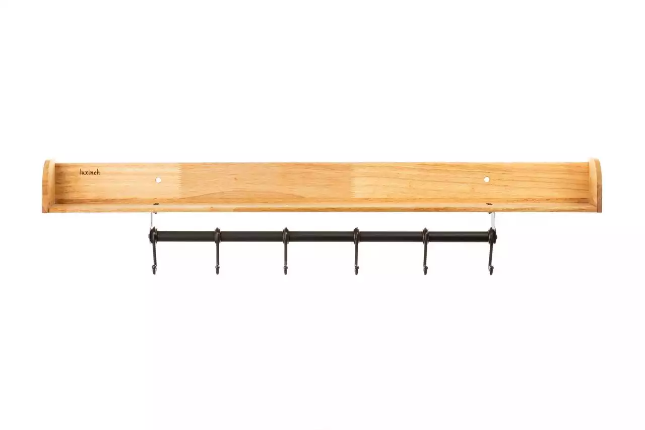 ترکیبی از چوب و فلز: استند هارمونی با استفاده از چوب رابر وود تایوانی و آویزهای فلزی با رنگ مشکی ضد زنگ، یک هماهنگی زیبا و جذاب را ایجاد میکند. چوب رابر وود به خاطر استحکام و دوام بالایش، به عنوان یک ماده عالی برای ساخت شلفها شناخته میشود.