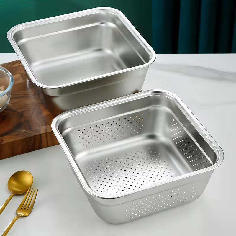 این لگن مقاوم و ضدزنگ برای شستن انواع میوهها، سبزیجات و مواد خوراکی دیگر بسیار مناسب است. طراحی مربعی آن به شما کمک میکند تا فضا را بهینهتر استفاده کنید و با آبکش سایز 26 سانت کاملاً ست و فیت میشود.